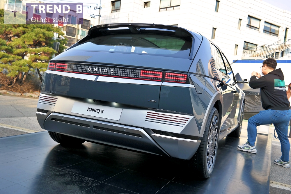 픽셀 디자인으로 어디에서도 볼 수 없었던 아이오닉 5 만의 스타일을 완성한 헤드램프와 테일램프는 만화 영화에서 튀어나온 것 같으면서도 독특한 고급스러움으로 디테일에 굉장히 많은 신경을 썼을 확인할 수 있다.