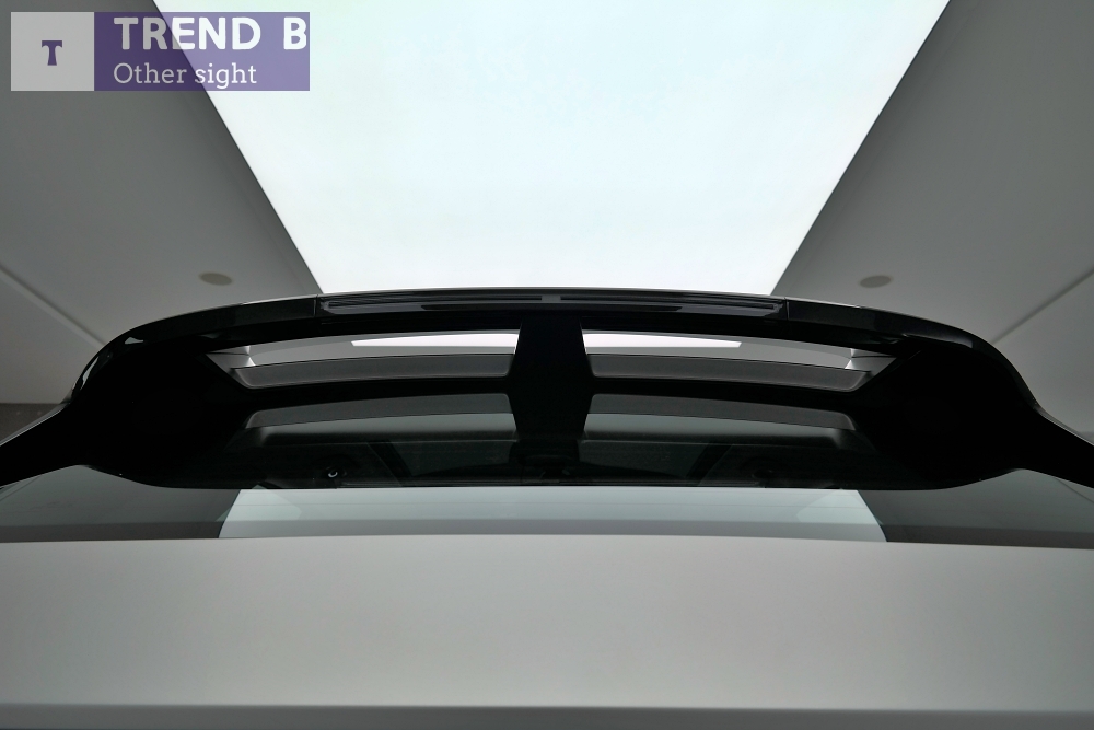 루프에 자리 한 커다란 스포일러는 공기 역학을 고려 한 디자인을 넘어 후방 와이퍼를 삭제했다는 점이다. 후방 와이퍼를 삭제하고 스포일러 안쪽에 워셔액 토출구를 배치 해 공기 흐름에 따라 자연스럽게 워서역으로 후방 시야를 확보하는 것인데 이는 추후 시승을 통해서 직접 확인해 보아야 할 부분이다.