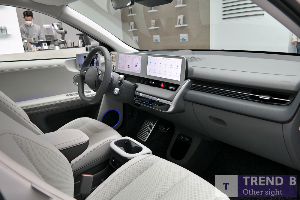 최대한 간결하지만 비어 보이지 않고, 공간 활용성을 높이는데 초점을 맞춘 실내 구성은 기존의 모습 과 완전히 다른 아이오닉 브랜드의 새로운 레이아웃을 제시한다.