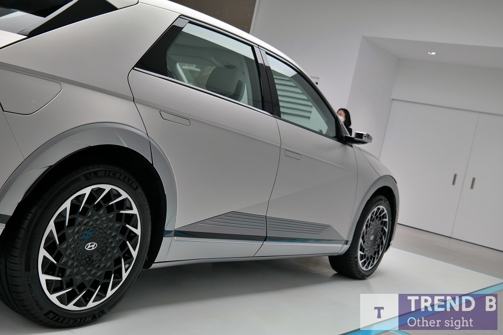 마주하게 된 아이오닉 5는 온라인을 통해서 본 첫 인상과 달리 3m의 휠 베이스를 바탕으로 한 큰 차체가 주는 무게감과 신선함을 전한다. 현대차에 있어서 없어서는 안 될 포니를 모티브로 한 외관은 이미지를 통해서 보는 것보다 포니 디자인이 오마쥬 된다.