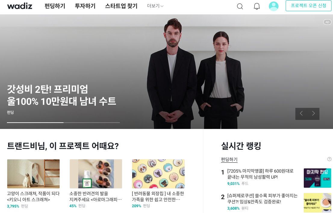 + 흔한 쇼핑몰 아닌 인기 트렌드를 모음, 와디즈펀딩 어때?!