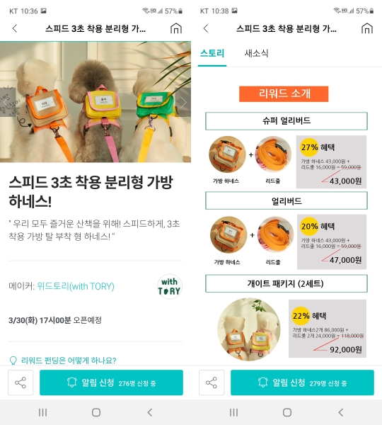 또 하나 펀딩 예정인 용품은 3초 착용 분리형 가방 하네스로 산책 시 필요한 용품을 가방에 넣을 수 있어 조금 더 편한 반려동물과의 산책이 될 것으로 예상되는데, 펀딩이 시작되면 빠르게 소진이 될 것으로 예상되는 만큼 알림 신청을 통해서 슈퍼 얼리버드 혜택을 놓치지 않을 예정이다.