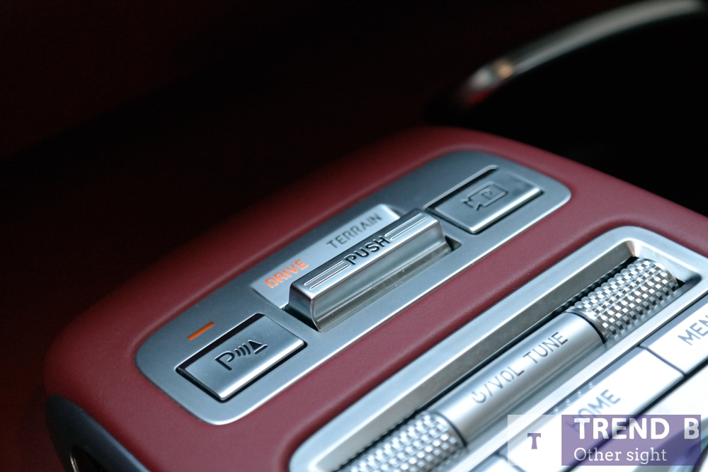 주행 모드 버튼이 터레인 모드와 통합으로 구성되어 있다보니 직관성에서 다소 아쉽게 느껴지고, 통합 인포테인먼트 콘트롤과 다이얼 전자식 변속기는 위치는 여전히 애매히 두 기능의 위치를 바꾸었으면 좋겠다는 생각이다.