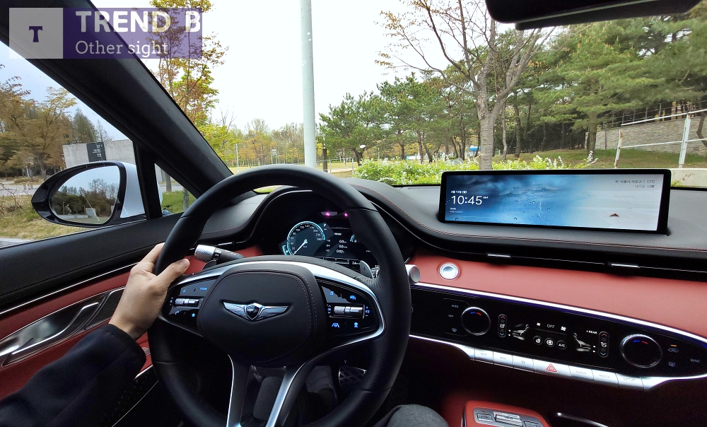 컴포트 모드에서는 시트의 볼륨감이 커져 쿠션감을 높이고, 프리뷰 전자제어 서스펜션은 노면의 정보를 파악해 보다 안락하고 편안하게 노면의 충격을 걸러주고 변속 타이밍을 느껴지지 않을 만큼 부드러운 변속과 출력 전달을 통해서 상위 모델인 GV80을 훌쩍 뛰어넘는 럭셔리한 승차감을 만끽하게 해 준다.
