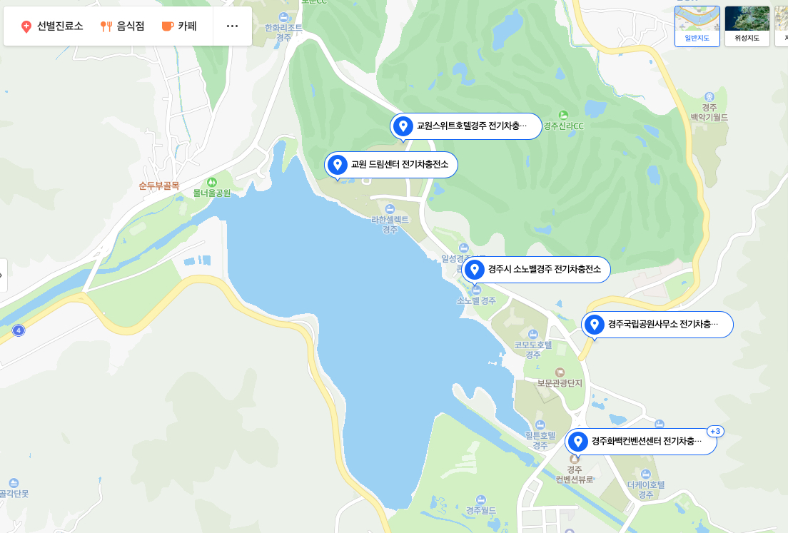 보문관광단지 내 충전시설은 약 7곳 이상 있다는 것을 확인 후 가까운 거리의 교원 스위트호텔 & 드림센터 충전소를 찾았지만 충전 구역에 일반 차량들이 버젓이 주차가 되어 있고 교원에서는 이에 대한 관리나 충전시설을 이용할 수 있는 조치를 해 줄 수 없다는 말 만을 반복했다.