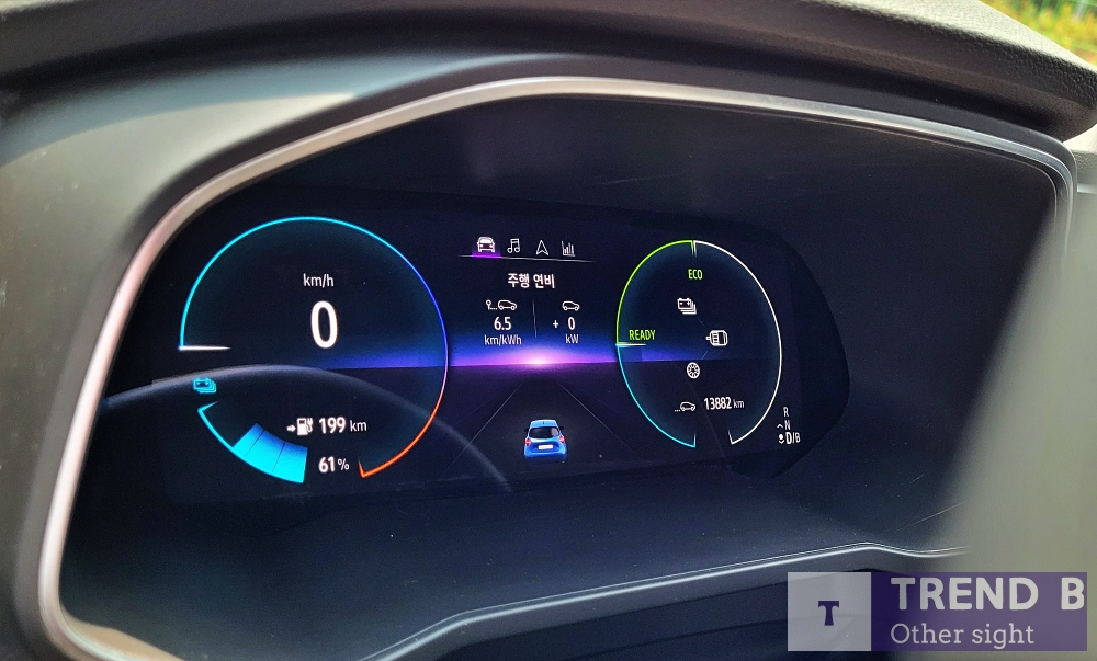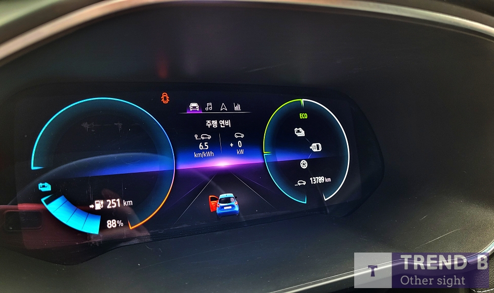 외관에서 다소 실망한 부분을 화려한 그래픽으로 눈을 즐겁게 하는 디지털 요소들은 분명 환영하는 부분이지만, 전기차인 만큼 전력 사용량 등에 대한 다양한 정보는 부족하고, 화려한 그래픽만 선보이고 전용 메뉴는 겉 모습에만 치중한 것 같아 아쉬운 부분이다.