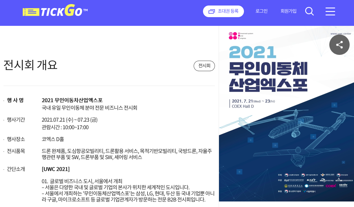 2021 이동체산업엑스포 온라인 무료 사전등록은 전시회 예약 전문 사이트인 '틱고'에서 무료로 사전등록이 가능하므로 이를 적극 활용해 보시는 것을 추천한다.