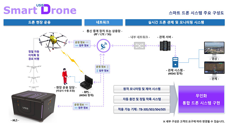 주식회사 유시스 / 스마트 드론 시스템을 이번 엑스포를 통해서 산업 분야에서 사람의 생명과 안전을 지켜주는 무인이동체 역할을 톡톡해 해 낼 국내 기업 중 하나로 20년, 21년 연속 기술역략 우수기업 - T3 인증을 받은 기업으로 IoT 기술 기반의 다양한 산업 안전 및 공정관리 솔류션을 선 보일예정이다.