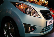 이날의 주인공인 마티즈 크리에이티브의 디자인을 자세히는 아니지만 사진에 담아 보았다. 마티즈 크리에이티브 전면의 특징은 앞유리를 본넷 쪽으로 확장하여 센터페시아의 공간을 늘렸으며, 그로 인해 짧아진 후드 캐릭터는 더욱 날카로워졌다. 앞모습의 곳곳에서 볼 수 있는 블랙의 몰딩 포인트는 스포티한 캐릭터 라인을 더욱 강하게 만들어 준다.